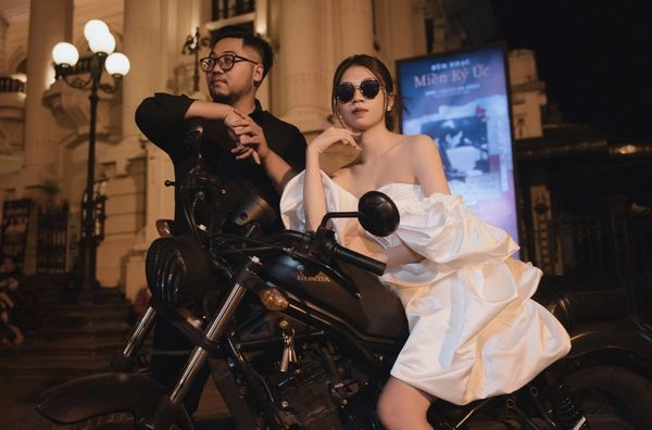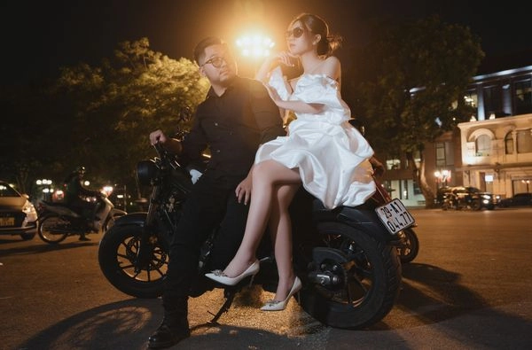"Người ta thường nói, khi màn đêm buông xuống, cũng là lúc cảm xúc thăng hoa nhất. Hà Nội về đêm vẫn thật lung linh những ánh đèn, đường phố vẫn tấp nập, em ngồi sau xe ôm lấy anh thủ thỉ những câu chuyện nhỏ nhặt, đôi khi là những than vãn thở dài chuyện công việc, có lúc lại là những mẩu chuyện thú vị em gặp được. Những câu chuyện vụn vặt đã cùng chúng mình đi qua mọi cung đường của thành phố, thêu dệt lên câu chuyện tình yêu bình dị của chúng mình. Em thích ngồi sau anh, tận hưởng thành phố về đêm, ngắm nhìn cảnh đẹp hoa lệ của thủ đô thân yêu này."