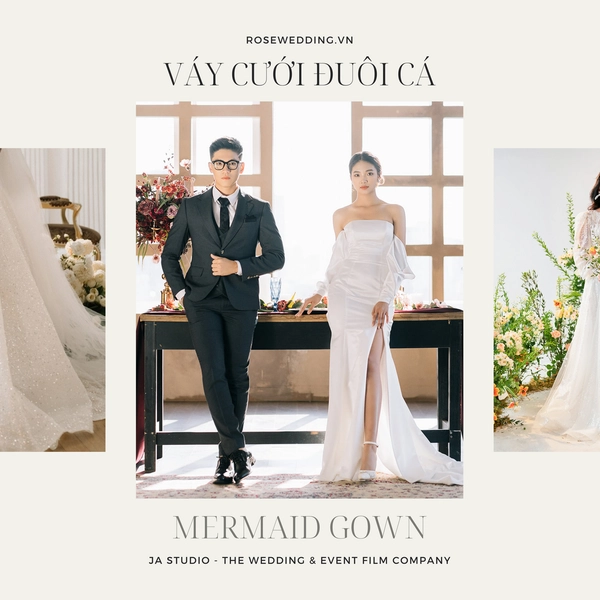 Váy cưới đuôi cá là một mẫu váy cưới đặc biệt và nổi tiếng với dáng ôm sát từ vai xuống eo và sau đó mở rộng từ eo xuống chân như đuôi, cá mang đến vẻ đẹp quyến rũ, tinh tế và hoàn hảo cho ngày cưới. Được làm từ các chất liệu như satin, lụa hoặc ren, váy cưới đuôi cá tạo nên vẻ gợi cảm và nữ tính cho cô dâu. Mẫu váy này thường được lựa chọn bởi những cô dâu muốn khoe vóc dáng và gợi cảm trong ngày cưới.