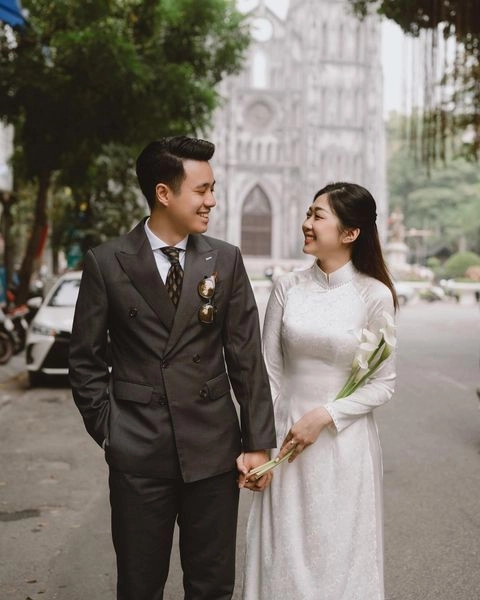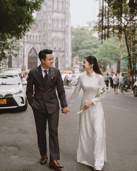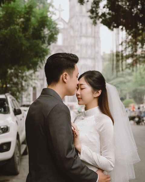 Nhà Thờ Lớn cũng như Hồ Hoàn Kiếm, Hồ Tây - là một địa điểm gắn liền và trở thành thành biểu tượng mỗi khi nhắc tới thủ đô xinh đẹp. Thực hiện bộ ảnh cưới tại nơi đây như một cách thu vào khung hình một Hà Nội thu . Chẳng cần cầu kỳ lộng lẫy, chiếc áo dài trắng tinh khôi của cô dâu như một nét chấm phá vào khung cảnh Hà Nội một cách hoà hợp đầy ăn ý.